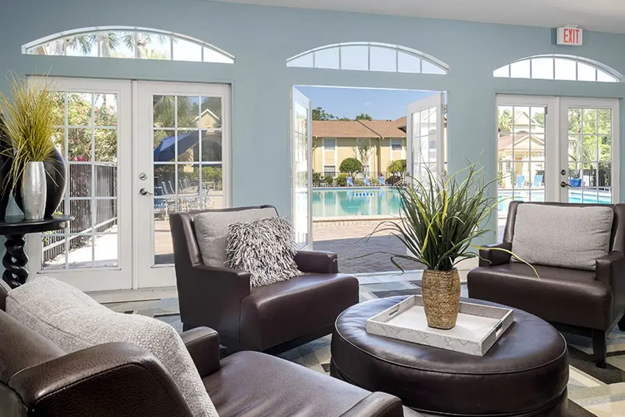 Community clubhouse lounge at Summerlin at Winter Park apartments in Winter Park, FL